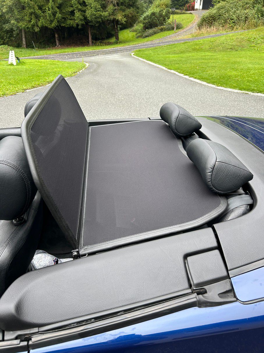A mounted wind deflector protects passengers from unpleasant air swirling cooling head, shoulders and neck, makes driving in your convertible the perfect pleasure!