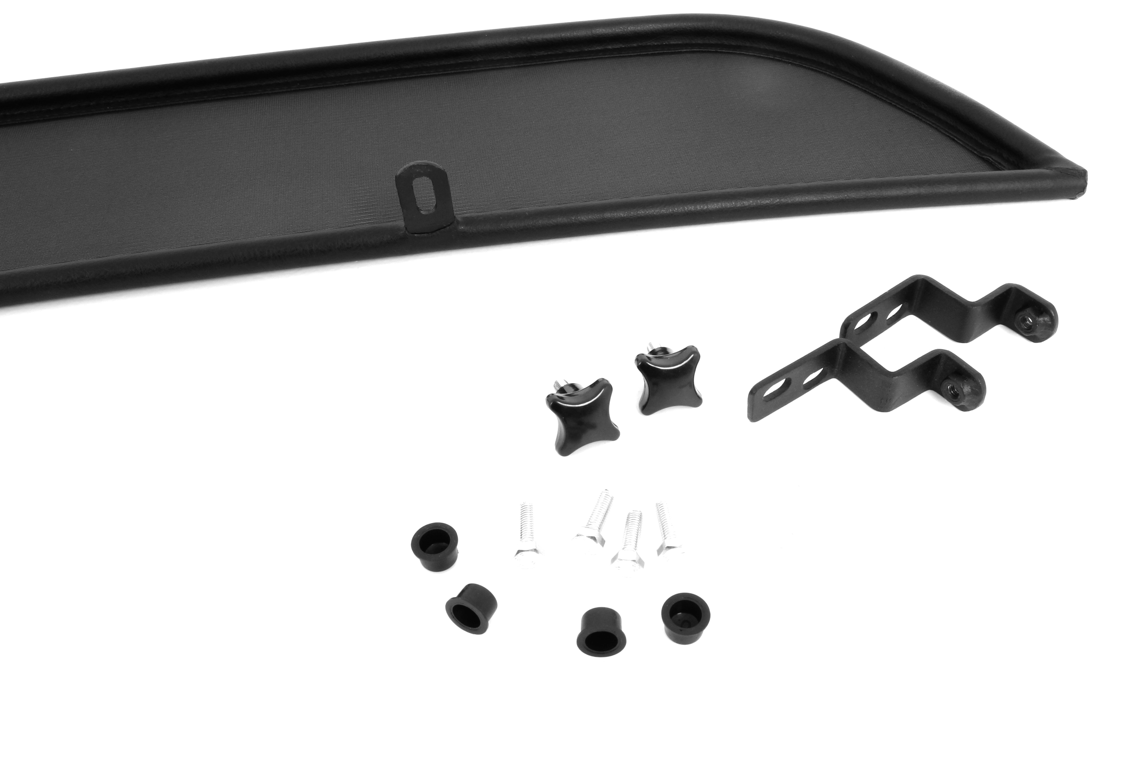 How does a wind deflector work?In its simplest form it is a mesh covered steel frame fixed behind the drivers seats, preventing the air swirling in the car every convertible driver knows. The deflector frames are made from high-grade steel tubes, bowed in car specific form and size, accurately welded and covered with weatherproof artificial leather with high-quality seams. A high-quality nylon-polyester blended fabric mesh is used as clothing, characterised by highest tensile strength and UV-resistance. Mesh, respectively frame systems can be mounted with the installation kits even by laymen within a few minutes!